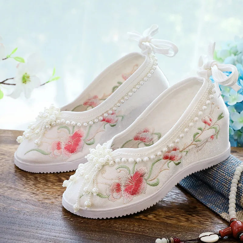 The New Women Traditional Chinese Style Hanfu Boot Embroidered Cloth Shoes Wedding Bride Old Beijing Retro Short Boots Footwear - white 7cm / 35 / VIP Price is backordered and will ship as soon as it is back in stock.