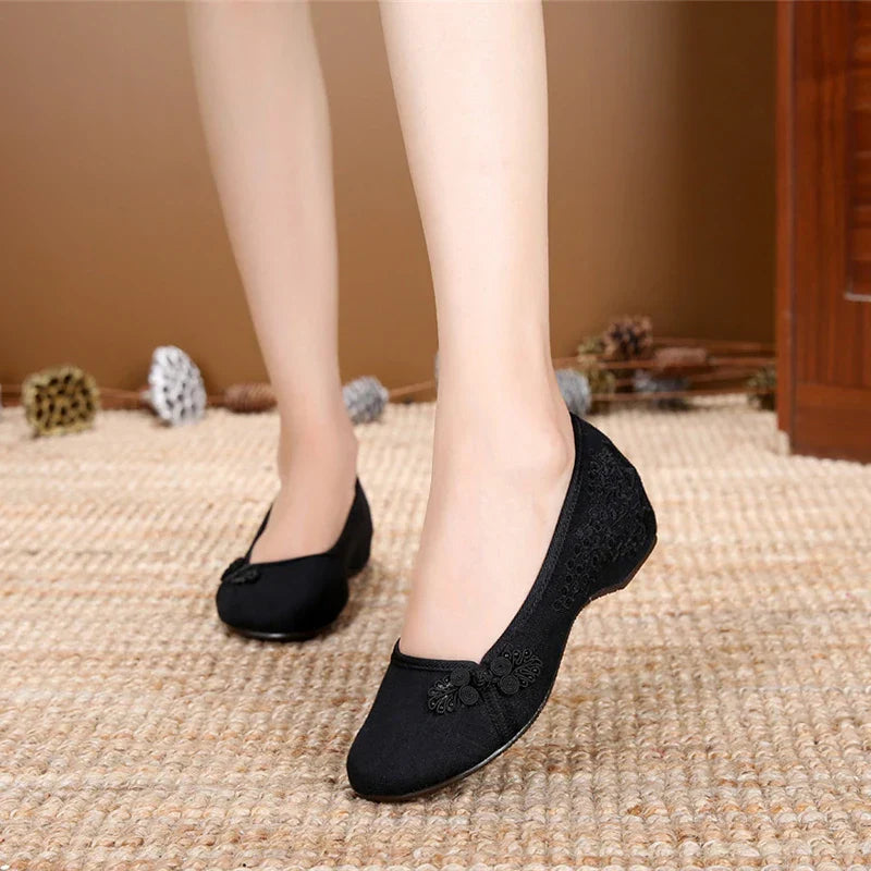 Veowalk Women Cotton Fabric Embroidered Slip On Ballet Flats Retro Chinese Style Ladies Casual Soft Comfortable Ballerinas Shoes