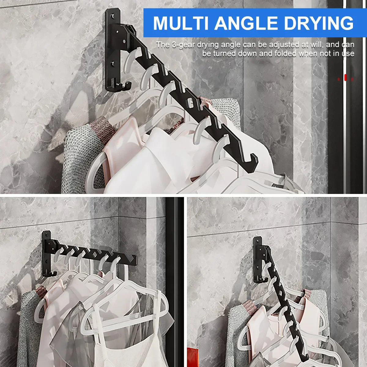 Clothes Drying Rack Adjustable Angle Clothes Hanger Wall-mounted