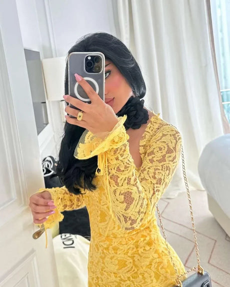 Lovestory Yellow Lace Prom Dresses Sexy Square Neck