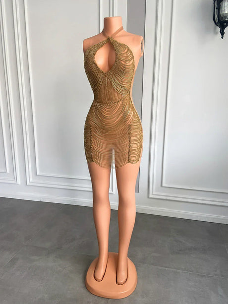 Luxury Halter Sleeveless Real Cocktail Gowns Black Girl