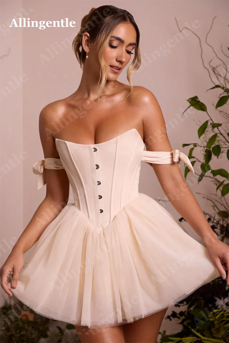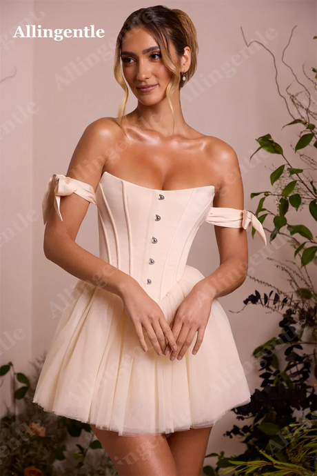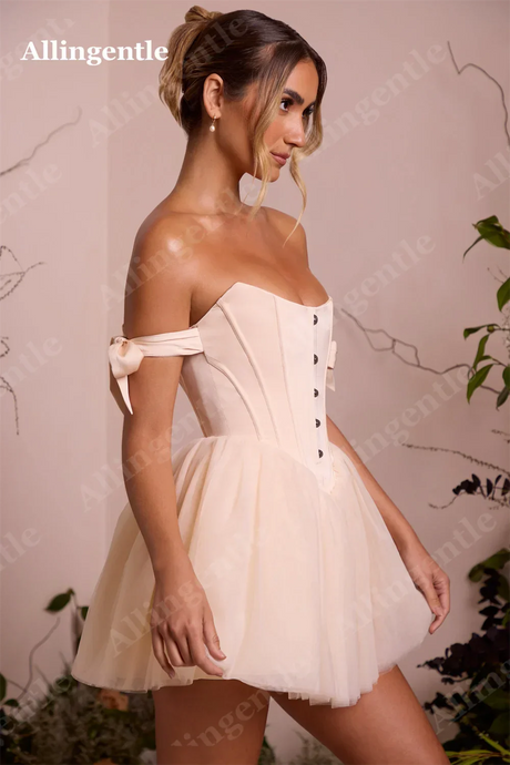 Allingentle Blush Pink Off Shoulder Homecoming Dresses 2024