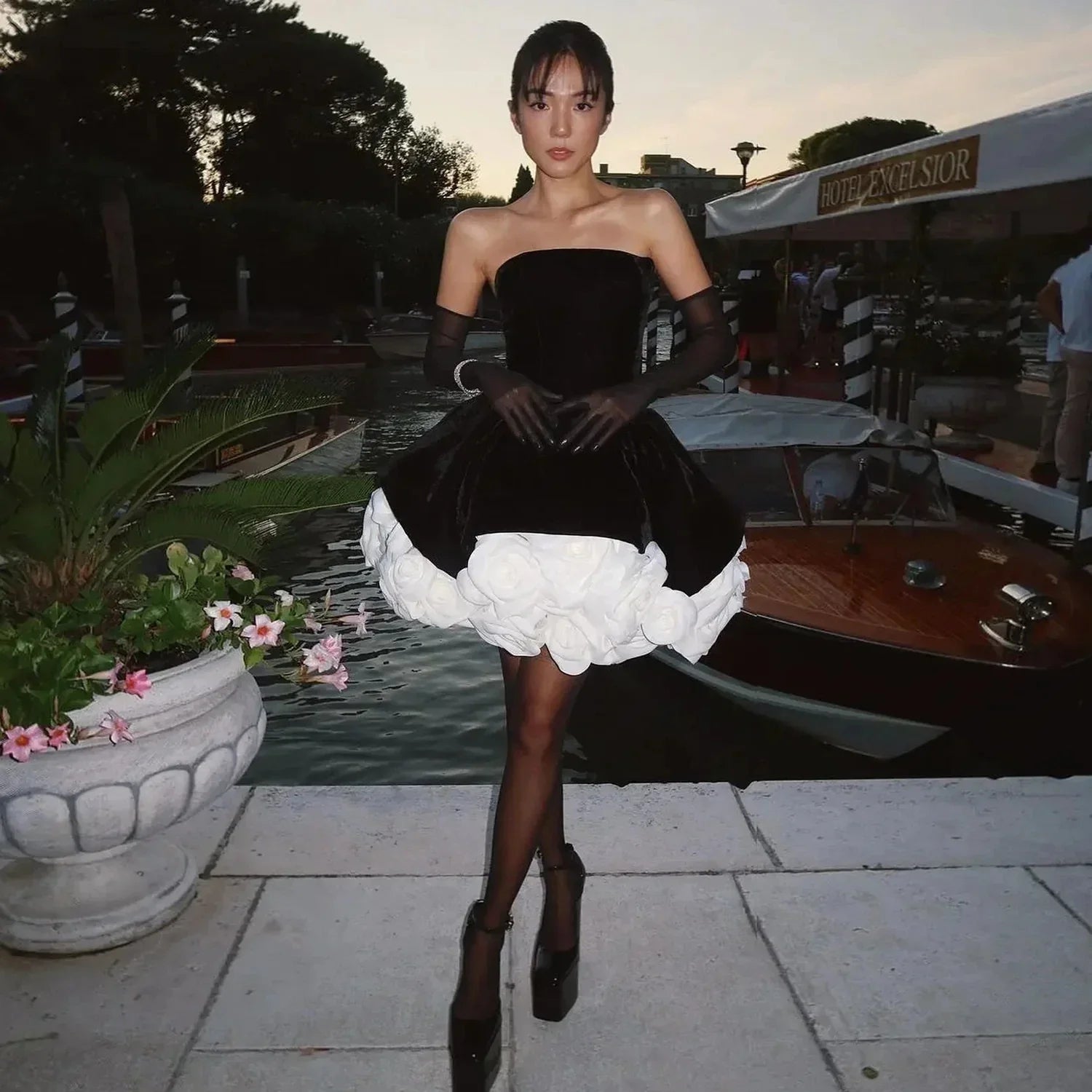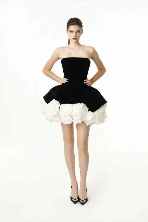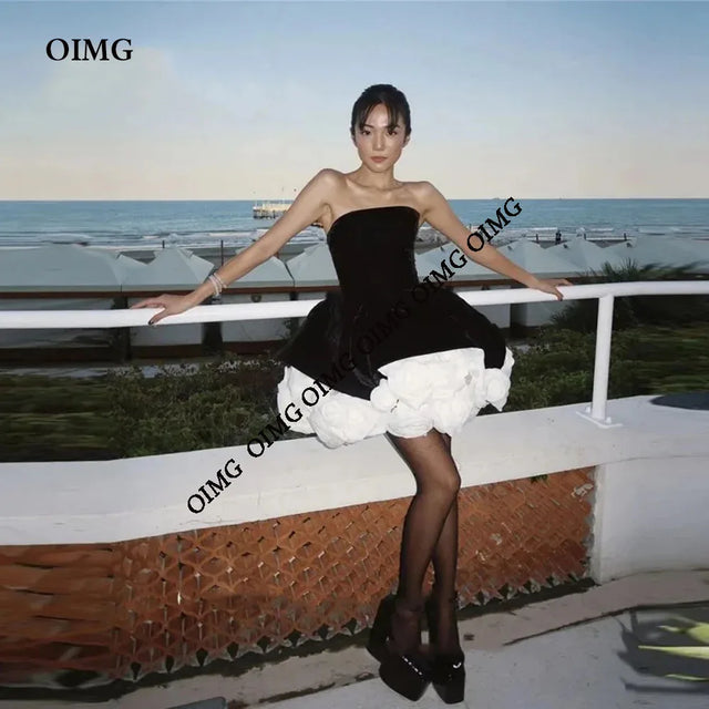 OIMG BlackWhite Ball Gown Short Mini Prom Dresses
