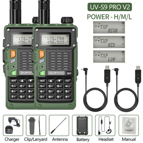 2PCS BaoFeng UV-S9 Pro V2 Walkie Talkie 10KM