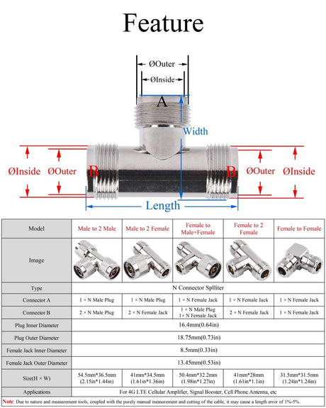 1PC RF Coaxial Connector Splitter N Male/Female to