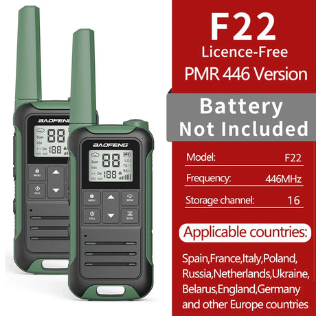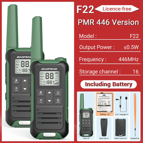2PCS Baofeng F22 Walkie Talkie Portable Mini Communication