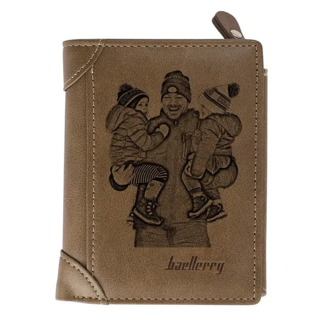 Custom Photo Wallet Leather Multi-card Engraved Picture Card Holder Wallets with Zipper Coin Pocket Father Day Gift for Husband