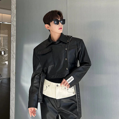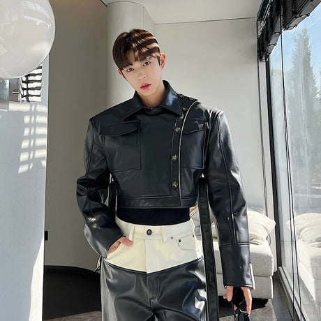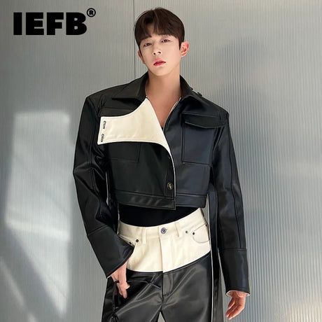IEFB Spring Designer Short Denim Pu Leather Jacket