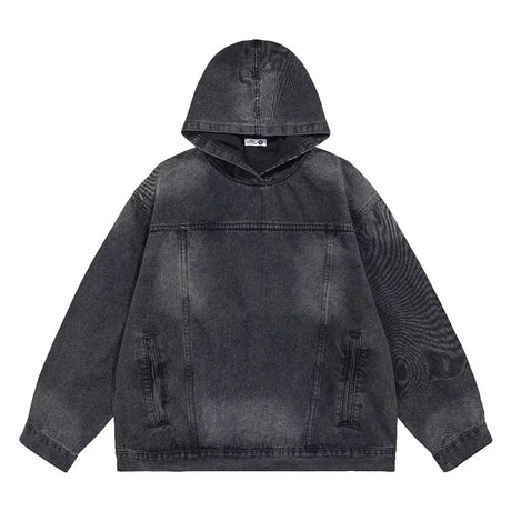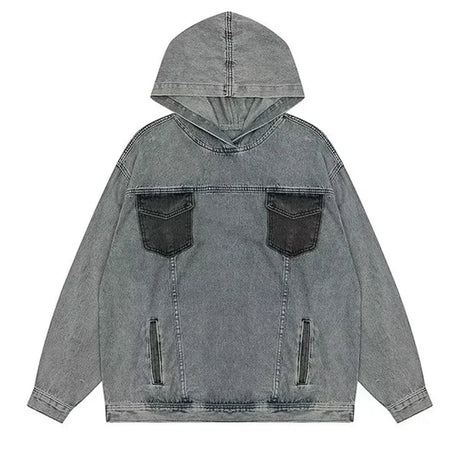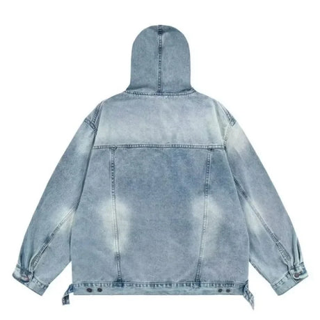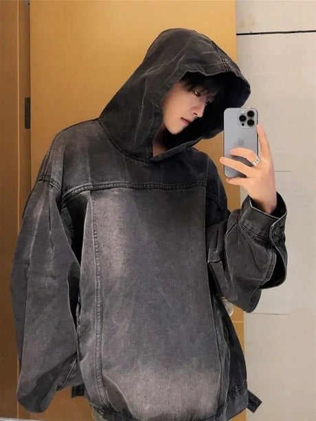 Japanese Denim Hooded Jacket Men Women Loose Casual