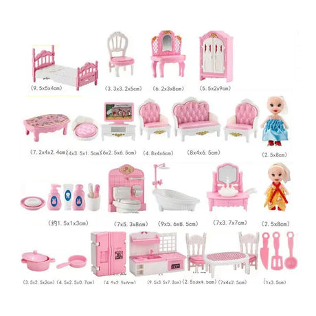 33 Items/lot Cute Pink Miniature Dollhouse Furniture Accessories