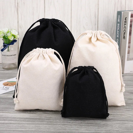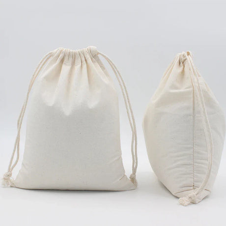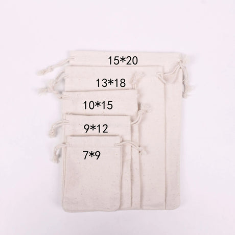 100pcs Natural Cotton Drawstring Gift Bags Custom Logo 7x9 9x12 10x15 13x18 15x20cm
