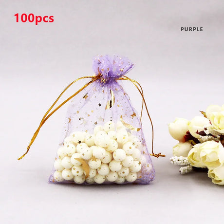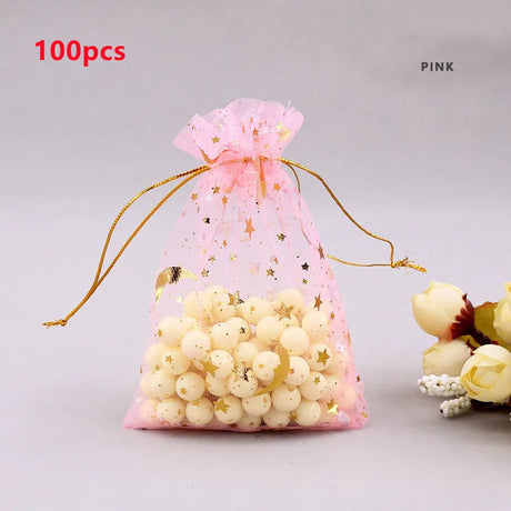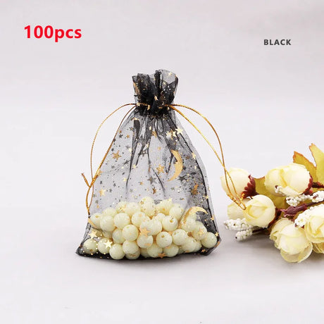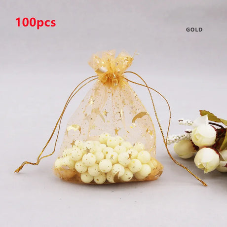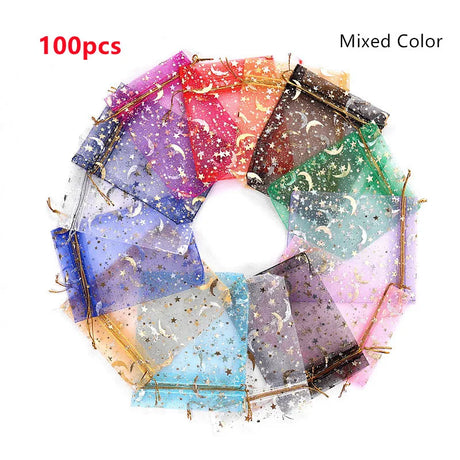 100pcs Moon Star Organza Drawstring Gift Bags 7x9cm Jewelry Packaging Pouches