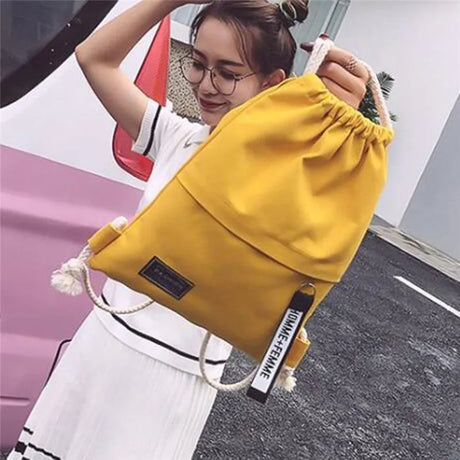 2022 Women’s Casual Canvas Drawstring Backpack – Solid Color & Letter Pattern