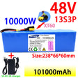 New 48V 100000mAh 1000w 13S3P XT60 48V Lithium