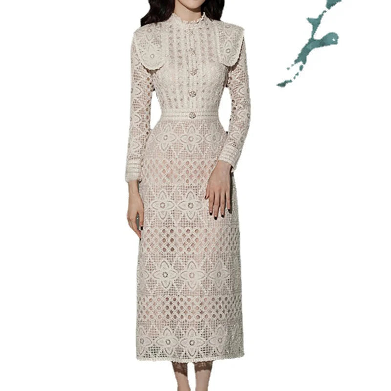 French Style Womens Prom Dress Elegant Longsleeved Waist - Beige / L / VIP Price is backordered and will ship as soon as it is back in stock.