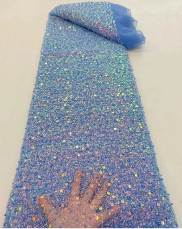 Heavy silver Sequins Lace Fabric With Bead Sequins