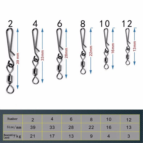 100pcs/box 6 Size Swivel Fishing Connector Snap Pin