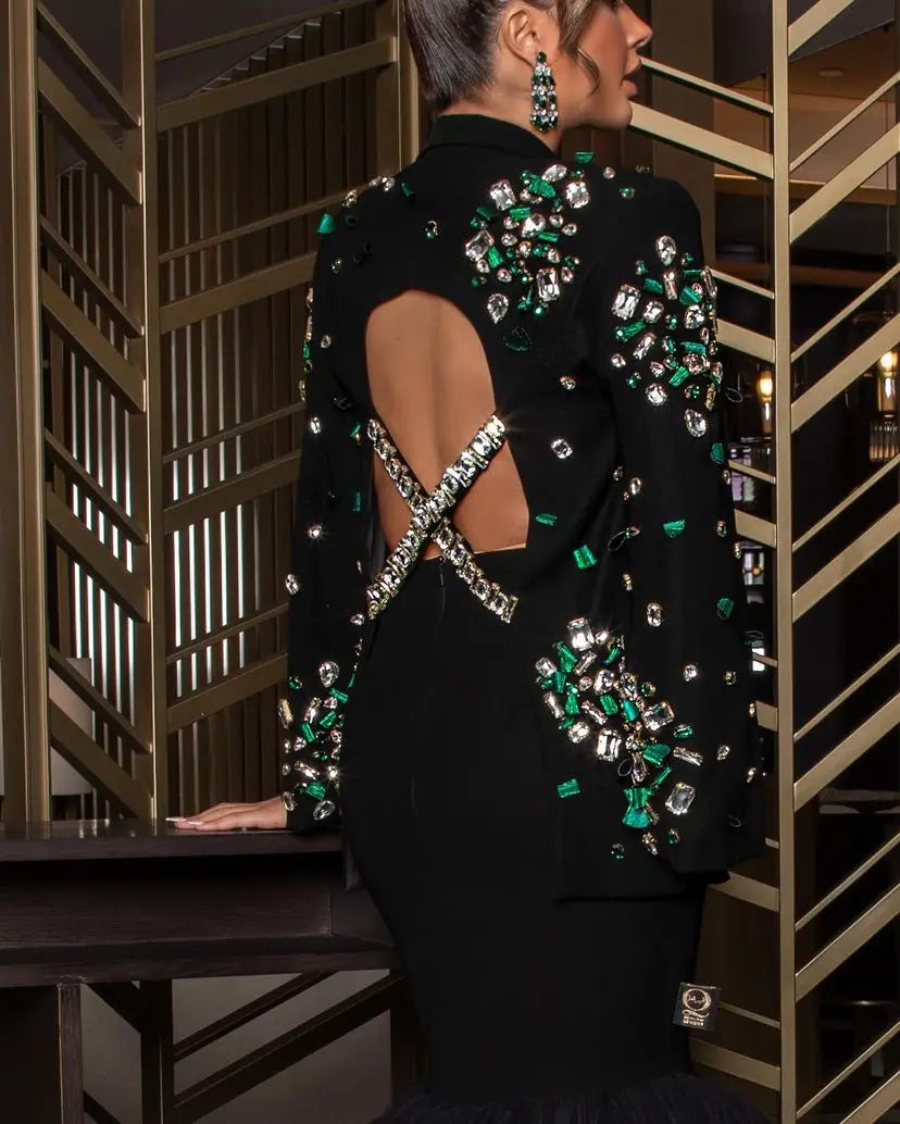 Arabia Luxury Evening Dresses Green Crystal Beads Mermaid - Beige / 2 / CHINA is backordered and will ship as soon as it is back in stock.