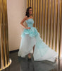 Exquisite Strapless Ball Gown Hi-Lo Prom Dresses Flower Organza Formal Occasion فساتين سهره نسائيه فخمةفستان سهرهجديد في فس