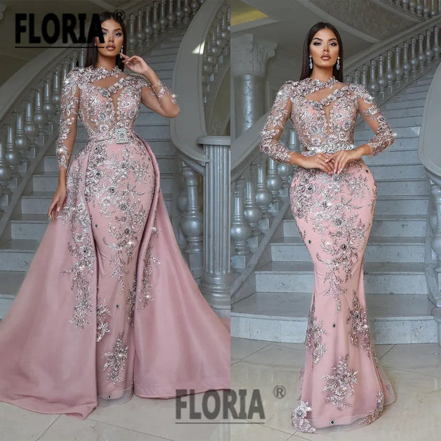 Gorgeous Dubai Mermaid Evening Dresses Flowers Lace Appliques Wedding Party Gowns Arabia Formal Occasion Dress robe de soirée