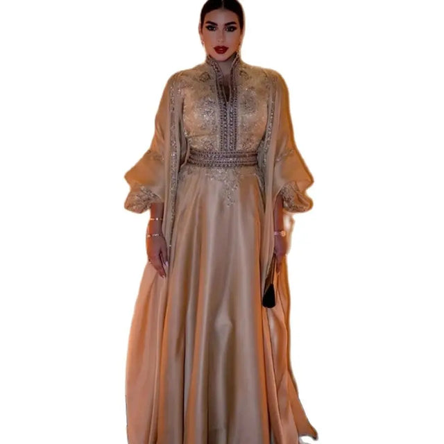 Luxury Golden Arabic Evening Dress 2023 Long Sleeve - Champagne / 2 / VIP Price is backordered and will ship as soon as it is back in stock.