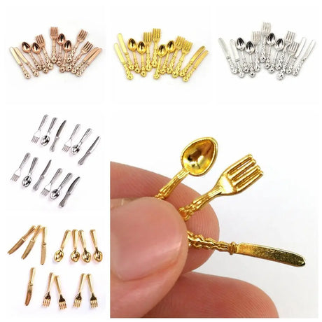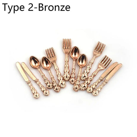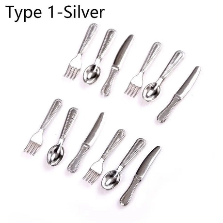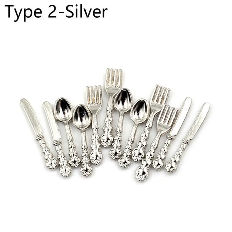12PCS Dollhouse Furniture Gold Silver 1:12 Scale Simulation