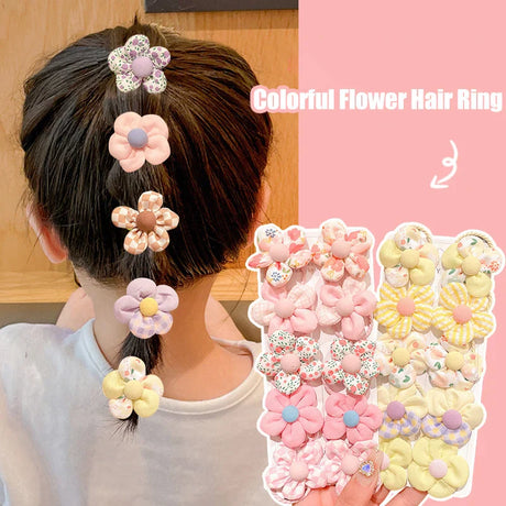 12Pcs/bag Girls Elastic Flower Hair Bands Sweet Hair