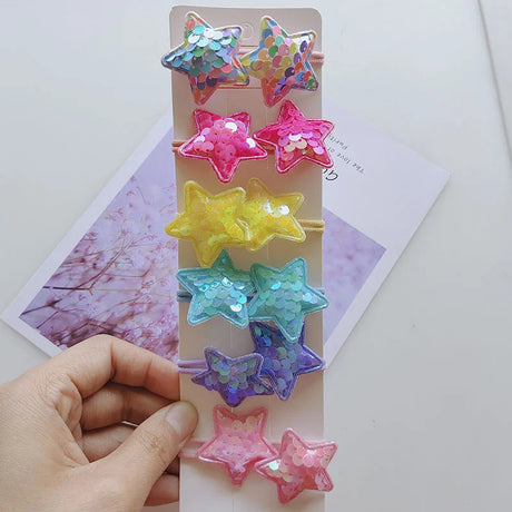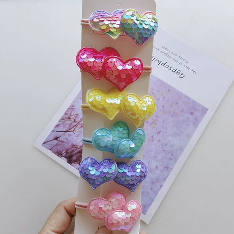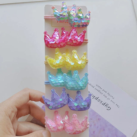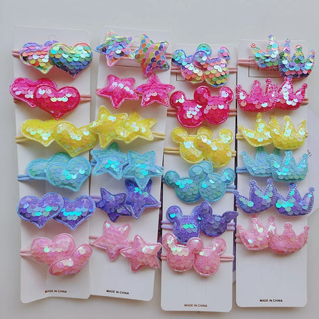 12PCS New Colorful Sequin Heart Star Crown Girls