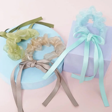 12Pcs Fairy Organza Hair Scrunchies with Ribbon Hair