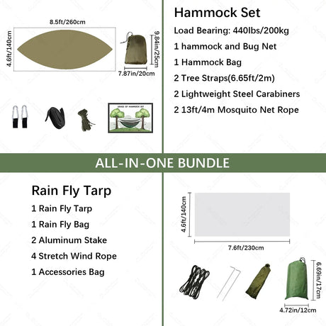 Camping Hammock with Bug Net and Rainfly Tarp,118x118in