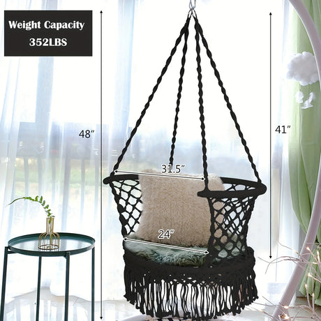 1pc Hanging Hammock Chair, Cotton Rope, Macrame Swing,