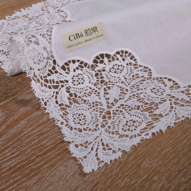 A007: White premium cotton lace handkerchiefs crochet hankies