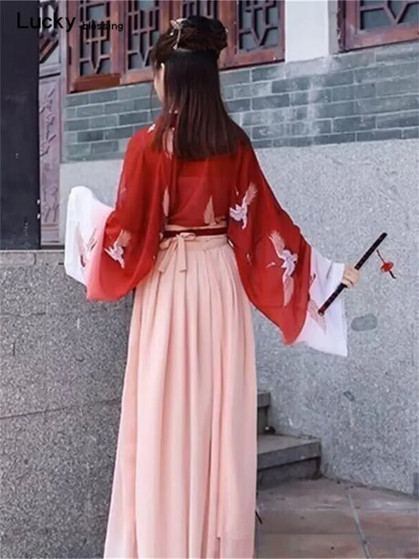 Retro Chinese Style Red Vestido Hanfu Dress Cosplay