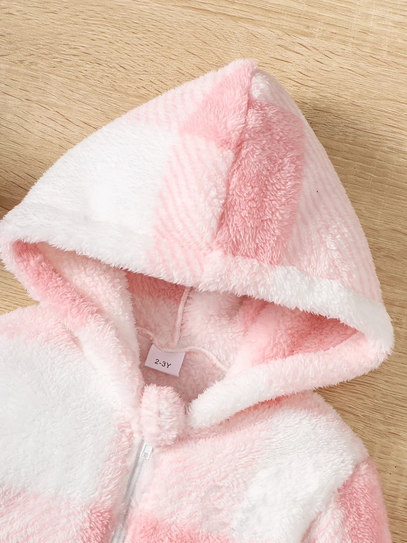 Little Girl Long Sleeved Hooded Sweater Cute Pink