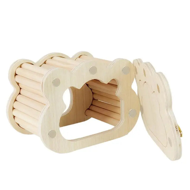 Wooden Hamster Hideout House Cute Cloud Shapes Tiny