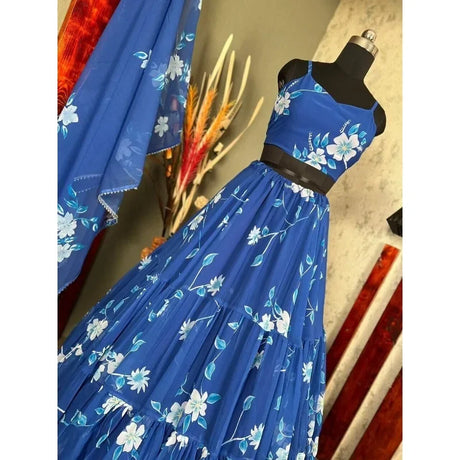 Blue Print Lehenga Choli Strap Blouse Flower Print