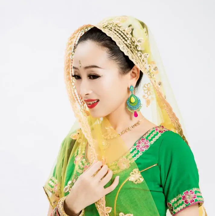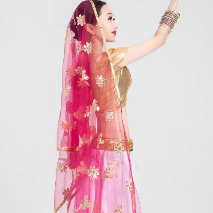 India Saree Dupattas Big Scarf Mesh Georgie Embroidery
