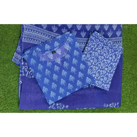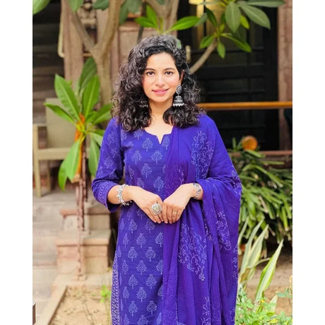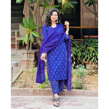 Women Cotton Printed Anarkali Kurta with Palazzo Dupatta