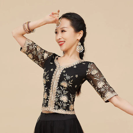 Traditional Gold Thread Embroidery Pakistan India Sari Top