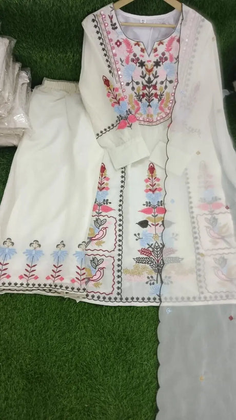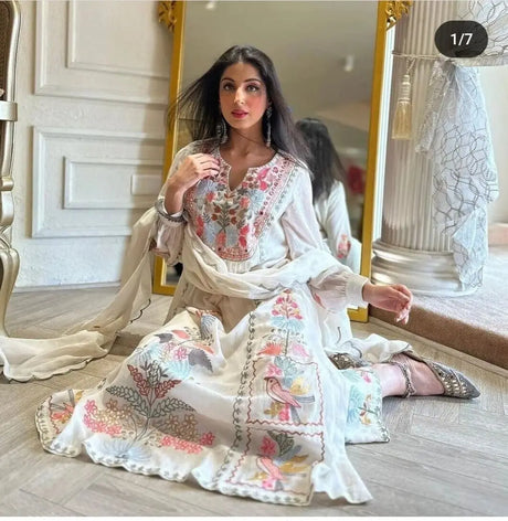 Salwar Kameez White Embroidery Wedding Party Wear Kurta