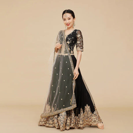 Original Embroidered Sari Indian Womens Dance Dress Lenha