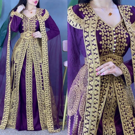 Yellow Eid Moroccan Kaftan Farasha Georgette Jilbab Dress