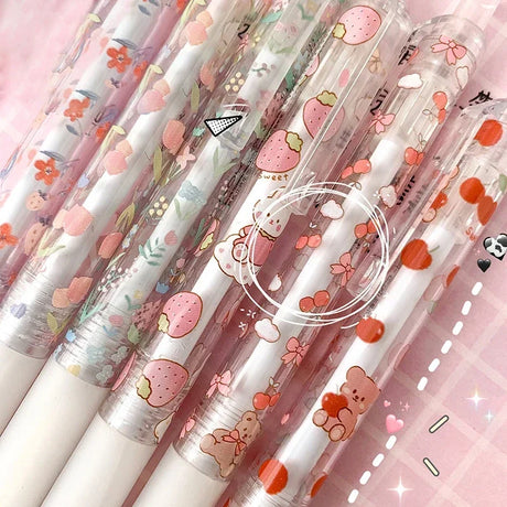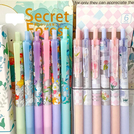 6pcs Floral Gel Pens Set Transparent 0.5mm Black