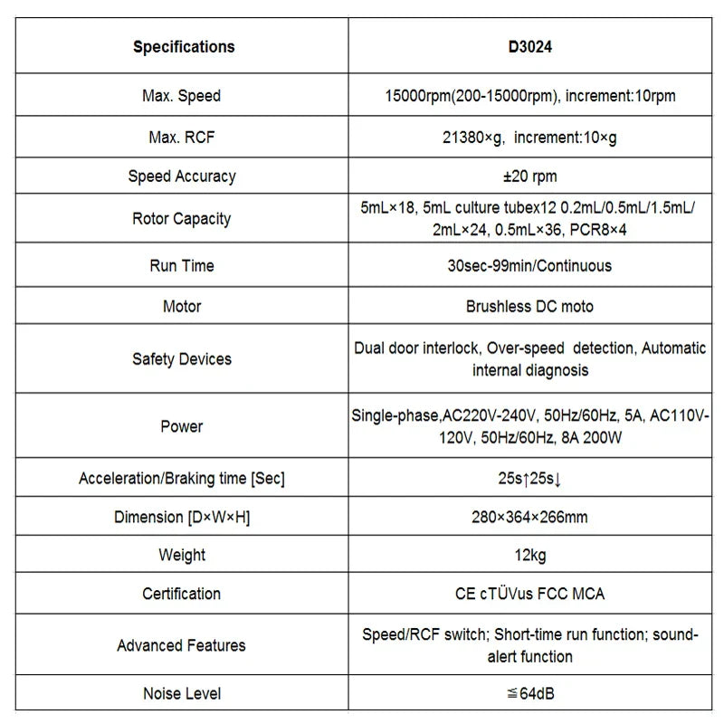 - Classification : Laboratory Centrifuge