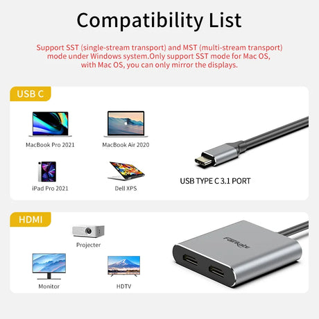 USB C to Dual HDMI Hub 4K60Hz Docking
