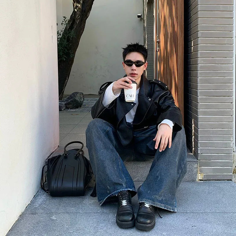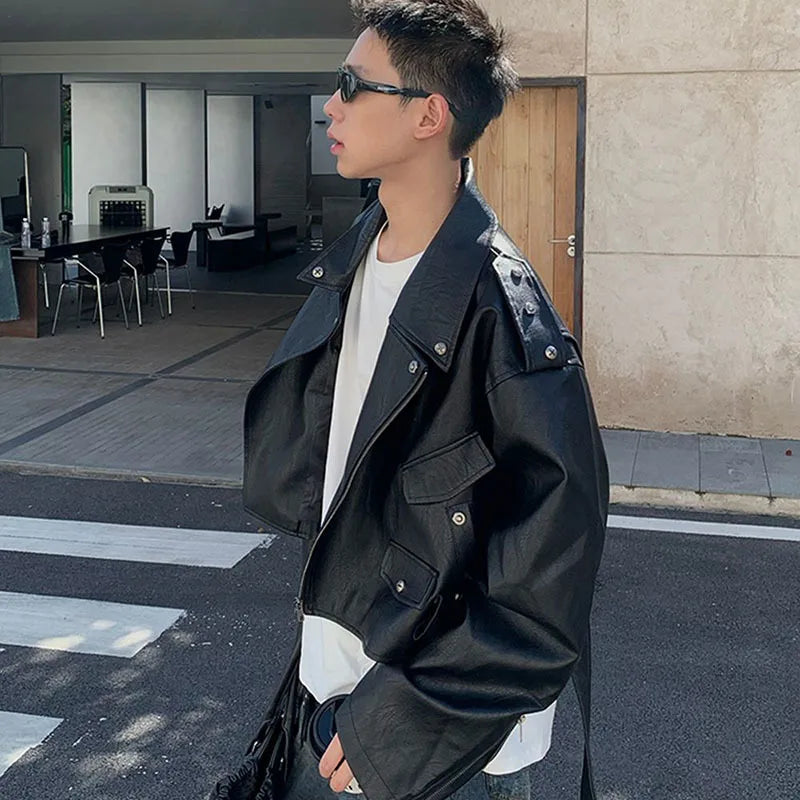 FEWQ Men's PU Leather Jacket Rivet Design 2023