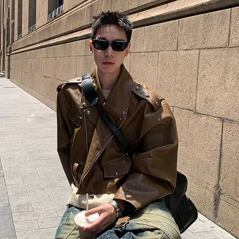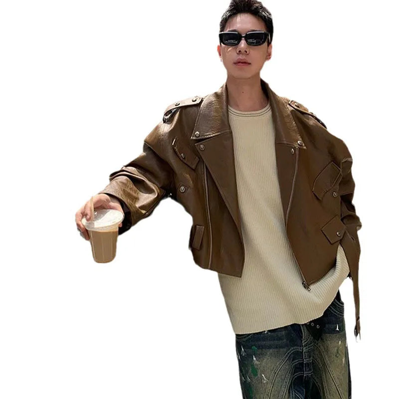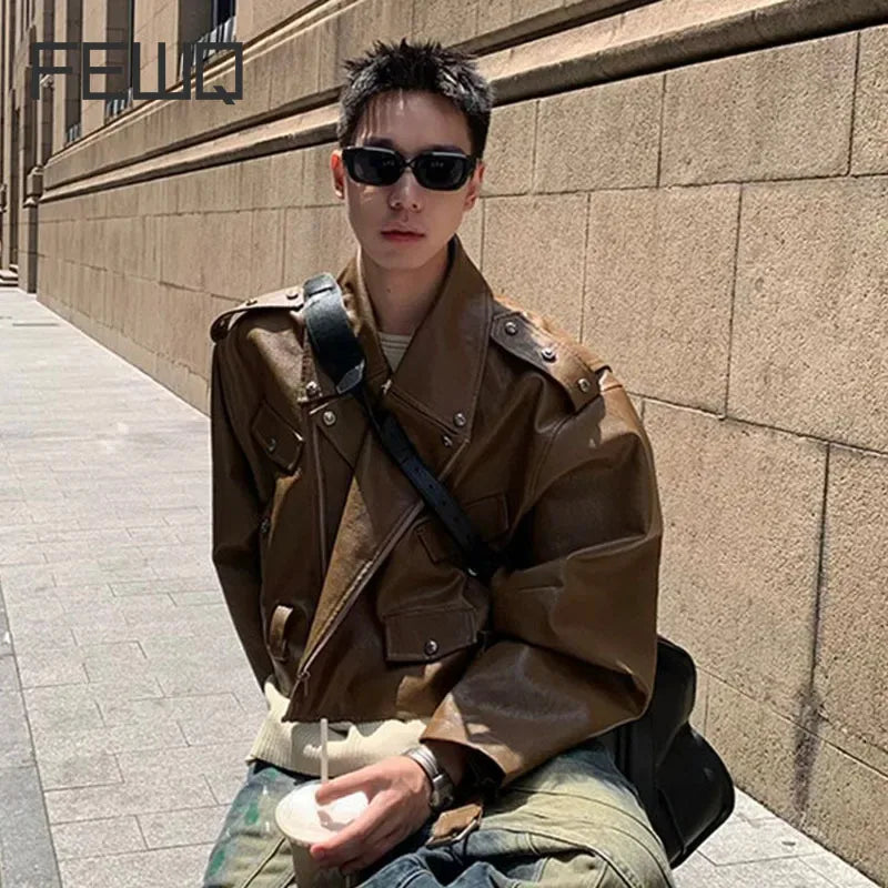 FEWQ Men's PU Leather Jacket Rivet Design 2023 - Brown / XL / VIP Price is backordered and will ship as soon as it is back in stock.