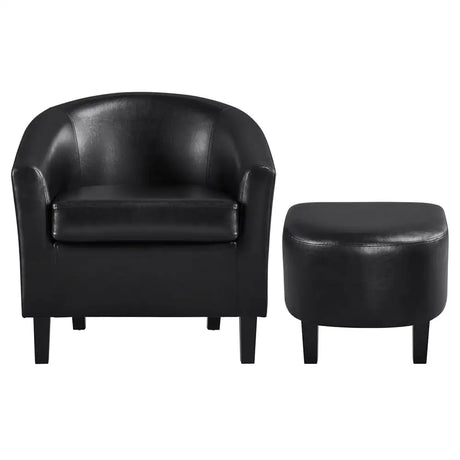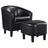 Barrel Accent Chair with Ottoman, Black Faux Leather