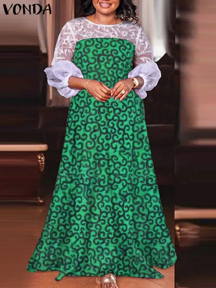 Plus Size VONDA Maxi Dress Summer Sundress 2023 - green / L / CHINA is backordered and will ship as soon as it is back in stock.
