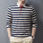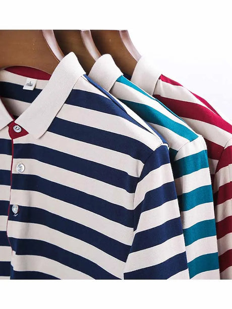 Commute Basic Striped T-shirts Spring Autumn Polo-Neck Button